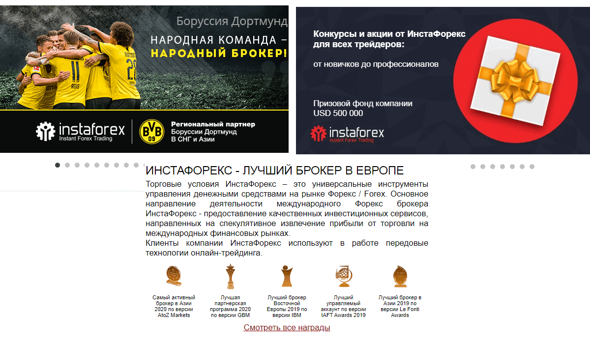 Призы и награды компании вынесены на отдельную страницу вместе с дополнительными напоминаниями о конкурсах и инвестиционными проектами InstaForex. Список фирменных побед впечатляет и постоянно пополняется.