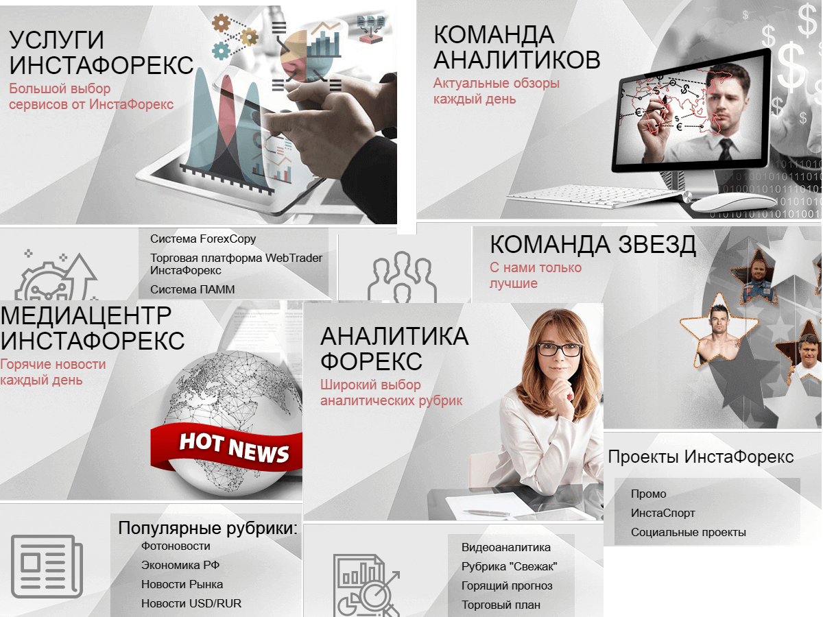 Компания Инстафорекс пользуется заслуженным авторитетом среди инвесторов, трейдеров, аналитиков, и немалая часть этого успеха принадлежит грамотно организованному информационному ресурсу брокера. Каждый из нас, даже случайно зашедший на официальный сайт Инстафорекс, найдет для себя массу полезной информации.