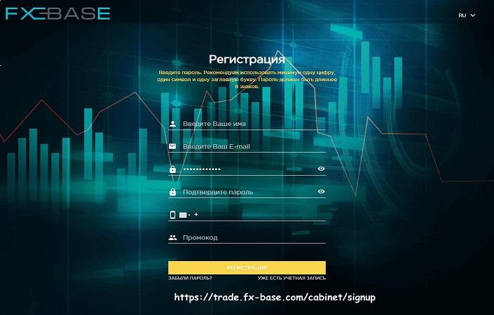Теперь смотрим аналогичное окно регистрации на официальном сайте FX Base …