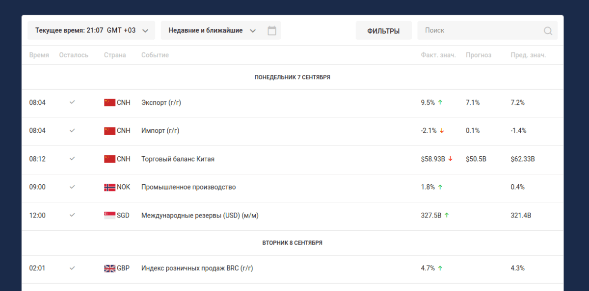 Второй «мощный» аналитический инструмент — банальный календарь предстоящих экономических событий.