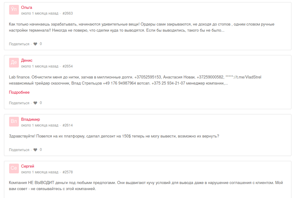 Отзывы реальных клиентов: Lab Finance — откровенный лохотрон