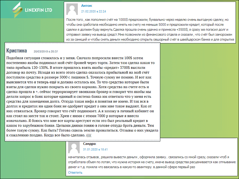 Ответом на вопрос будут отзывы Linexfin LTD. на сайтах и формах посвященных Форекс. Не будем приводить конкретных ссылок, все легко находится через поисковики. Обратите внимание, что случай не единичный и явно работает система.