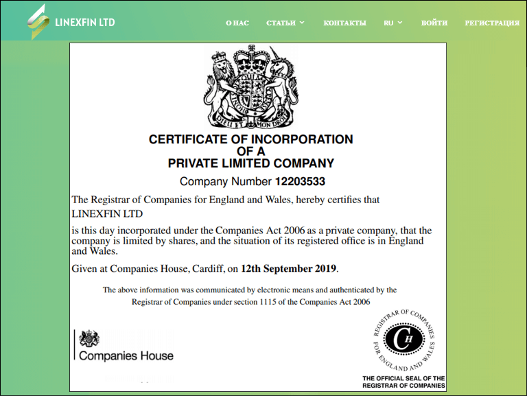 На время оставим в стороне отзывы Linexfin Ltd. и попытаемся составить собственное мнение по информации официального сайта. По сравнению с конкурентами информации явно недостаточно: есть только упоминания о партнерстве с Лондонской фондовой биржей (LSE, London Stock Exchange), десятках тысяч трейдеров зарабатывающих до 160% в год. Отсутствуют финансовые отчеты, сведения об учредителях и филиалах (возможно их нет).