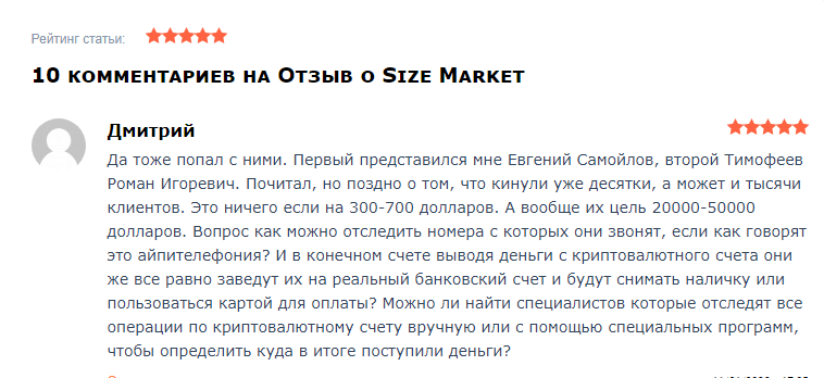 Забегая немного вперед стоит сказать, что этот отзыв Size Marrket больше похож на достоверный, поскольку рассмотренные далее факты, прямо указывают на мошенничество со стороны администрации проекта.