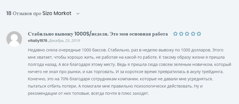 Этот отзыв Size Market, вероятнее всего, оставлен либо представителями проекта, либо по их заказу. В комментарии нет никакой конкретной информации и каких либо подтверждений достоверности написанного. Подобные отзывы всегда нужно игнорировать.