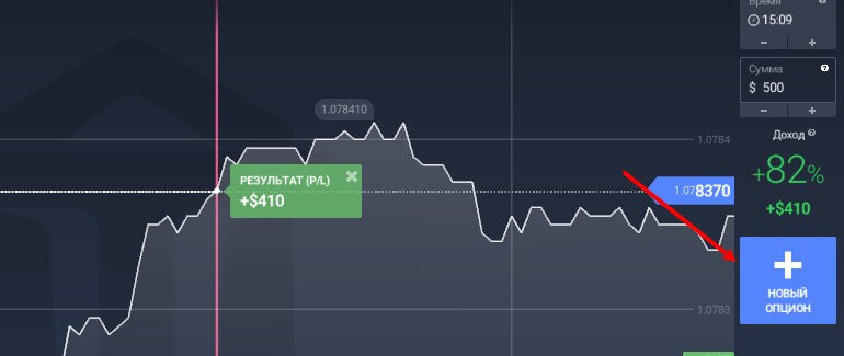 Как только результат был рассчитан для продолжения торговли выбирайте другой актив, если же хотите остаться на том же, то тогда нажмите на кнопку “Новый опцион” и сможете продолжить свою торговлю.