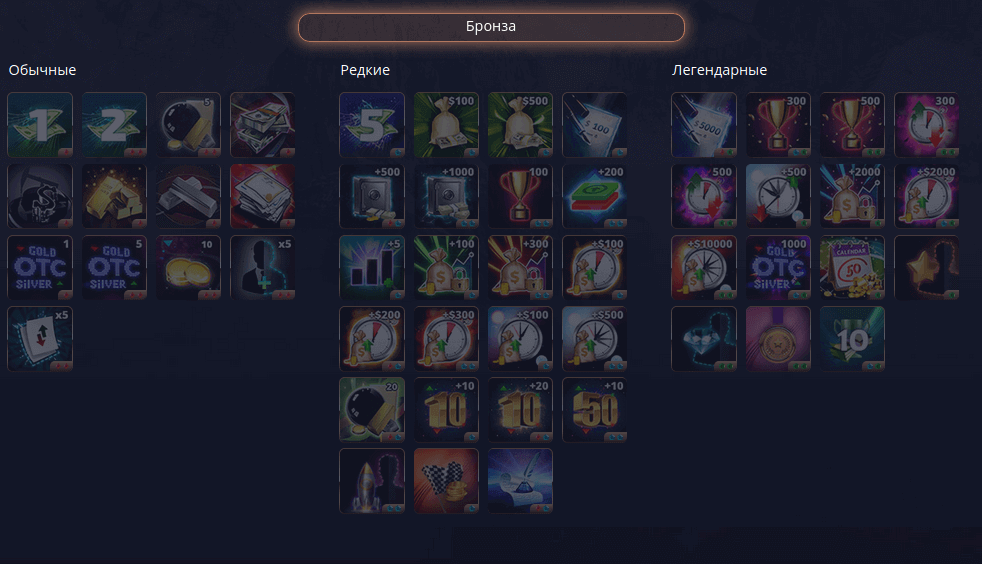 - Обычные. Получить их проще всего, но и ценность вознаграждения будет выражена чаще всего в красных камнях. Некоторые примеры обычных бонусов — провести операцию пополнения счета, открыть ордер по определенному инструменту, скопировать сделку, и так далее.