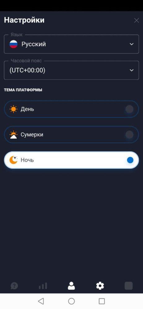 Из этого пункта доступны настройки языка (по умолчанию все пункты меню отображаются на русском, если в аккаунте Android этот язык выбран системным), часового пояса и цветовой схемы приложения.