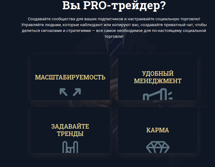 Профессиональным участникам открываются возможности для заработка от количества тех, кто копирует все проводимые PRO-участником операции.