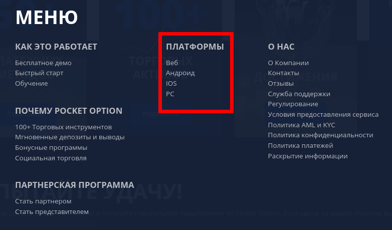 Важный раздел — «Регулирование». Покет Оптион — солидный надежный игрок, деятельность которого регулируется соответствующей лицензией.