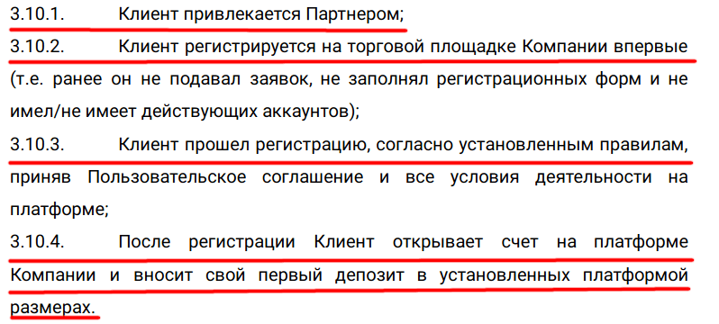 Существуют ограничения и в части привлекаемых сторон. Их регистрация должна осуществляться впервые, а размер первого депозита соответствует минимальным требованиям торговой платформы.