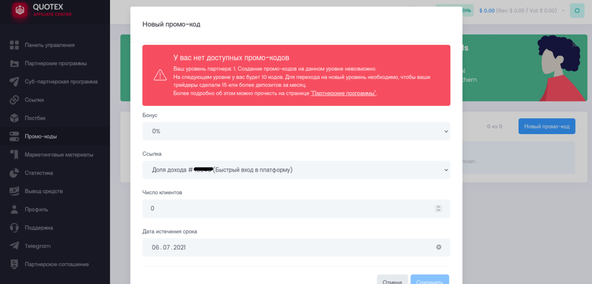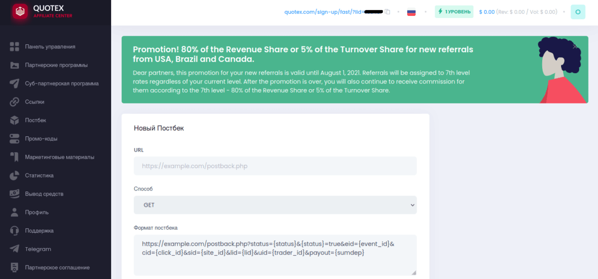 Как зарегистрироваться в партнерке Квотекс