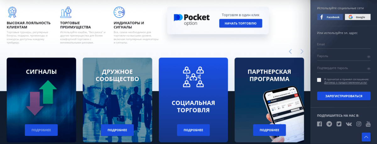 Как правило, примерно трехлетний период знаменует закат любого псевдо брокера, успевшего с момента начала своей деятельности набрать клиентскую базу и исчезнуть из поля зрения с их деньгами. Но Pocket Option перешагнул этот критический рубеж, успев доказать свою состоятельность и надежность. Поэтому многие годы успешной работы здесь обеспечены широкому кругу заинтересованных биржевых игроков.