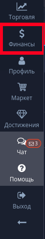 Любой из предлагаемых путей можно использовать, открыв в правой части торгового интерфейса меню «Финансы».