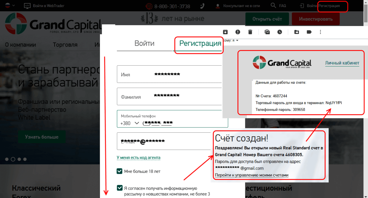 Зарегистрировать счет у брокера Гранд Капитал