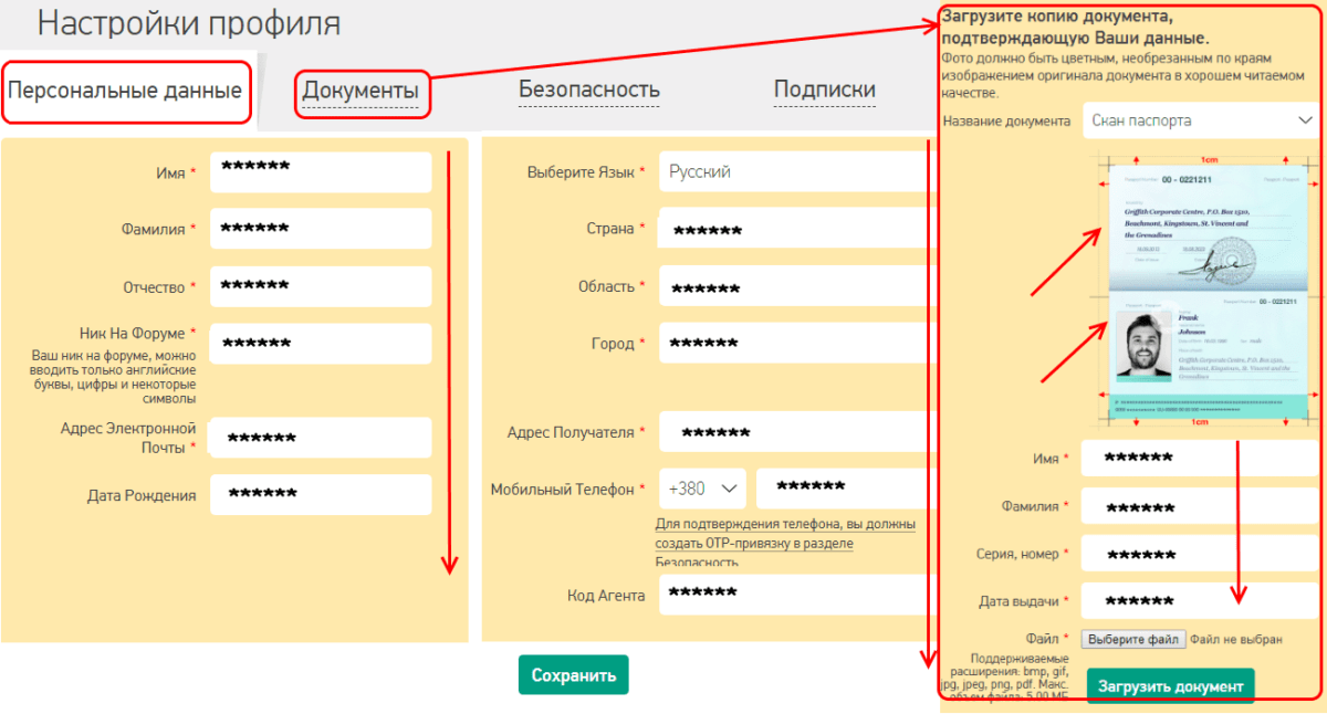 Предупреждаем: внимательно вносите свои данные в соответствующие поля, особенно, паспортные – информация будет сверяться с цветной скан-копией вашего действующего документа, которую также необходимо загрузить на сайт. После верификации менять личную информацию можно будет только после SMS-подтверждения на указанный при регистрации телефон. В этом же разделе, при необходимости, меняется пароль доступа в Личный Кабинет.