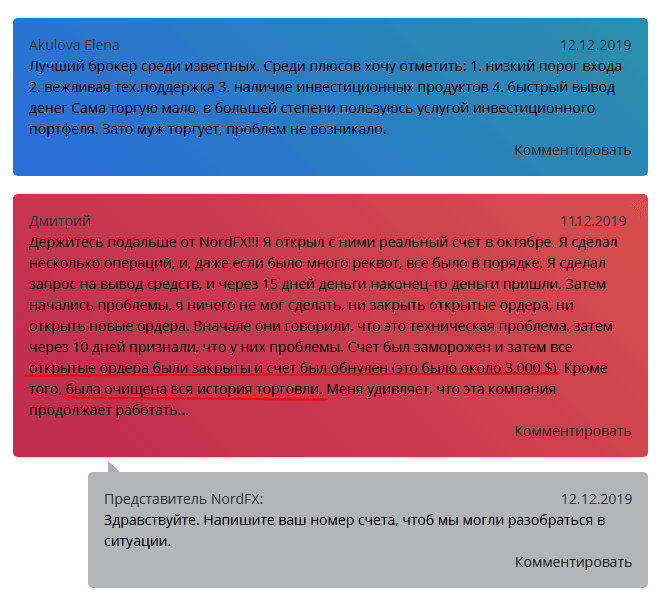Позитивный отзыв, вероятнее, всего реальный, но аргументация приведена стандартными фразами, человек явно озвучил чужое мнение. Официально NordFX не имеет технической возможности для коррекции истории торгов. На негативный отзыв менеджер отреагировал быстро, но если имела место последующая блокировка счета, то вероятнее, конфликт клиента с брокером затрагивает какие-то юридические вопросы.