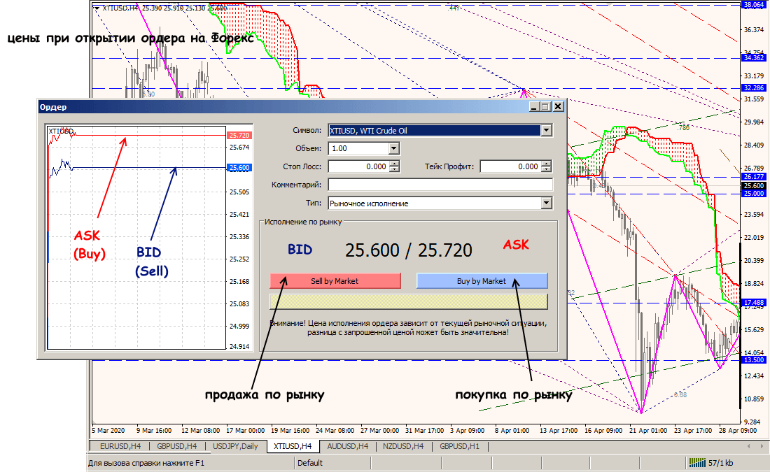 Покупка выполняется на уровне (Ask+spread), фактически − выше рынка, после нажатия опции Buy соответствующий торговый приказ получит ваш брокер. На уровне Бид эта заявка зафиксируется. Отложенники BuyStop и BuyLimit тоже устанавливаются по Ask, то есть войдут в рынок на более высоком уровне, чем вы укажете в вашей заявке.