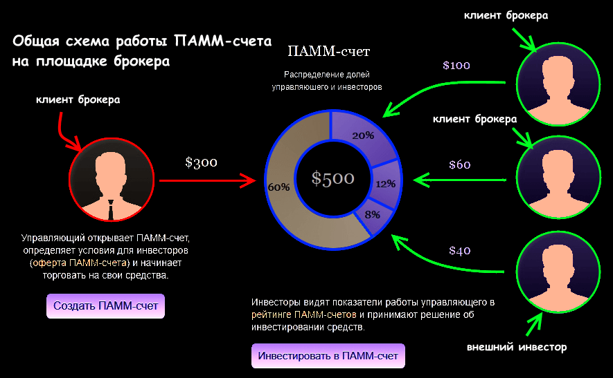 Брокер предлагает своим, а иногда – и клиентам других компаний схему инвестирования в ПАММ-счета (или иные проекты) на своей торговой площадке. За подобные услуги взимается некий процент, да и заявленные управляющими проценты прибыли могут быть ниже, чем можно договориться при заключении прямых договоров. Кроме того, property компании могут предлагать доверительное управление на Форекс через своих трейдеров.
