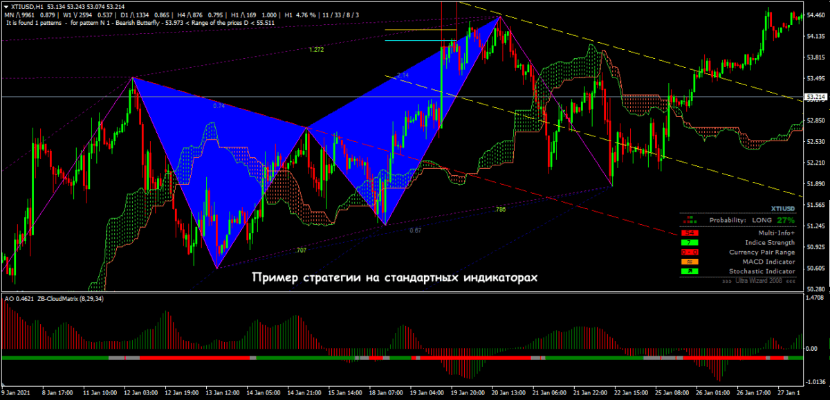 Предупреждаем: никаких «специальных» «нефтяных» индикаторов, скриптов, советников, также как и особых торговых стратегий в природе не существует, и если кто-то такой «суперграаль» предлагает – не верьте. Используются обычные технические инструменты, по стандартной схеме, разве что только методы Price Action требуют дополнительного изучения реальных торговых объемов. Такие данные можно найти в биржевых терминалах (Thinkorswim, MarketDelta).