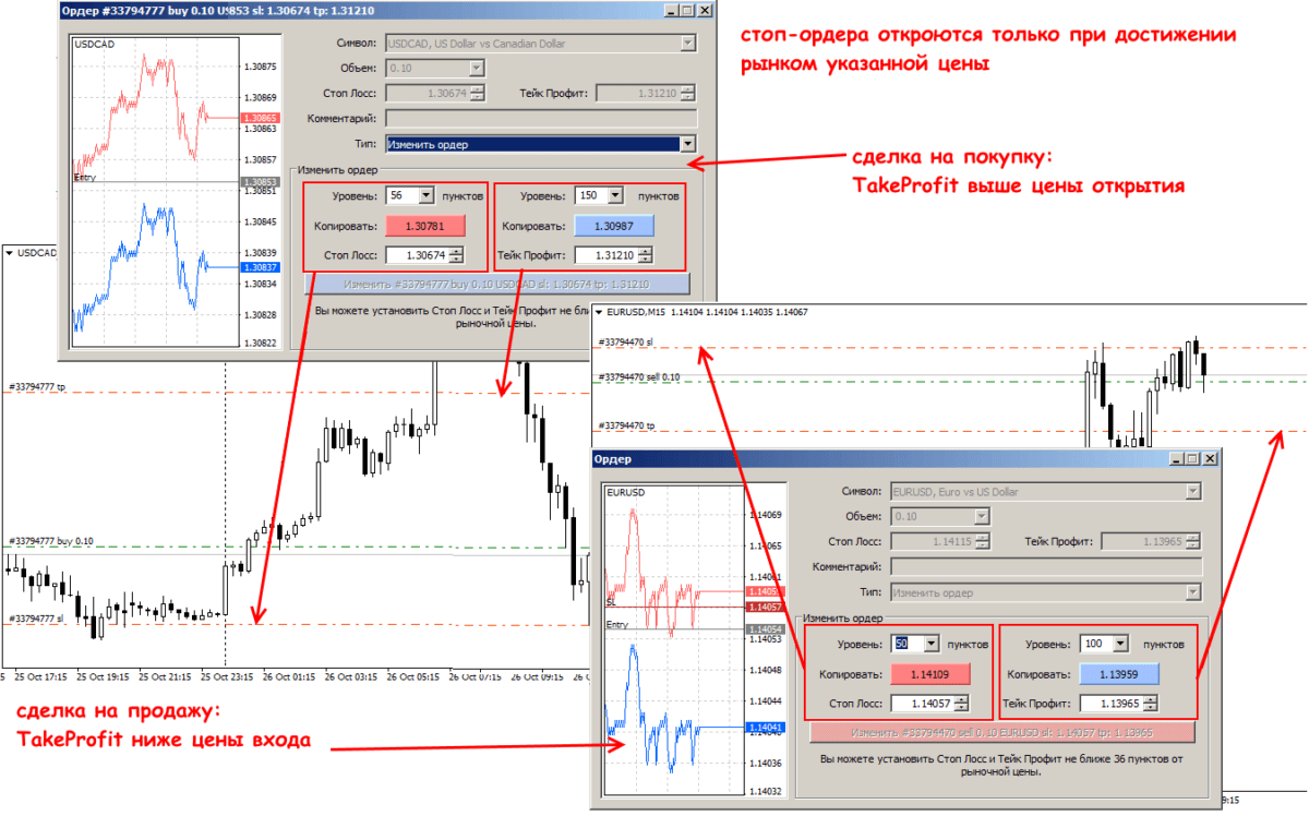 Общая схема установки связки Стоп лосс +Тейк профит в популярном MetaTrader 4(5) выглядит примерно так: