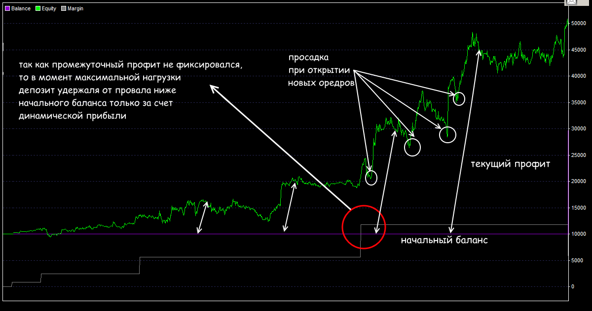- Предполагается, что обратные сделки для компенсации текущих просадок (локирование) в пирамидинге не применяется.