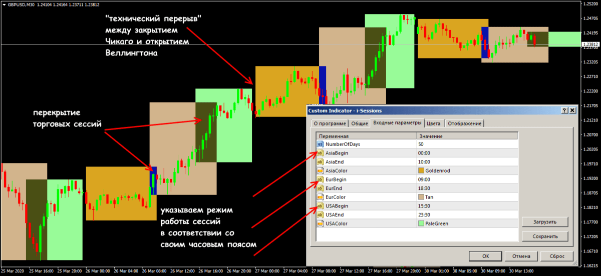 Торговые сессии на ценовом графике