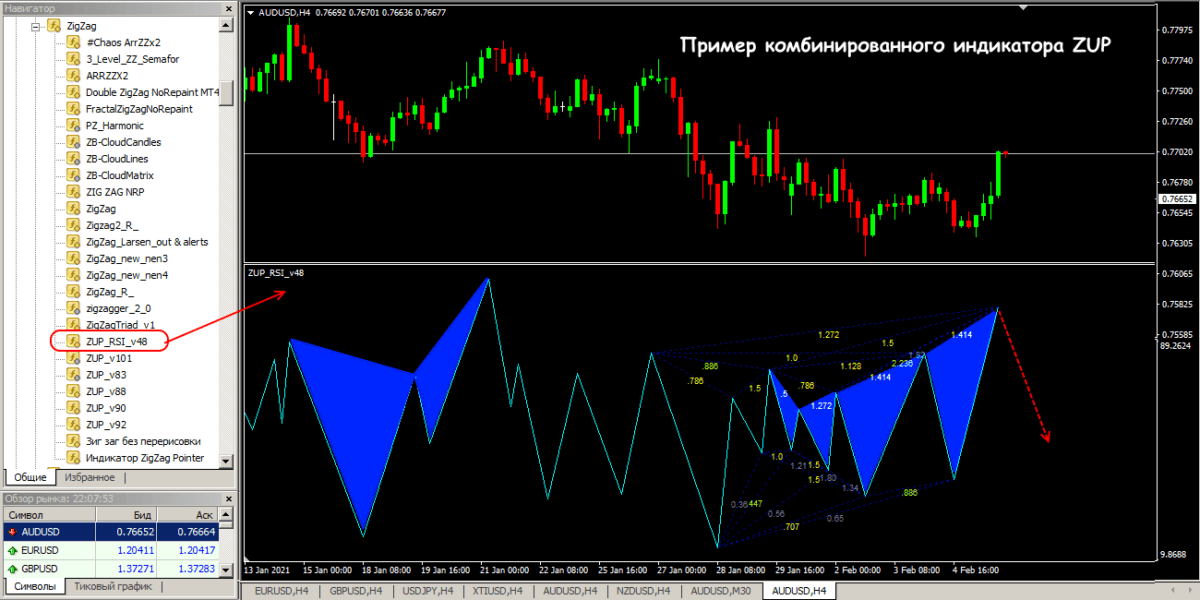 Так что входить в рынок нужно только через несколько баров после того как ZigZag показал «свежую» точку разворота. Для подтверждения сигналов можно использовать дополнительные инструменты (тут подробнее), а перед тем, как с ним работать, рекомендуем провести анализ на нескольких таймфреймах. При правильном использовании более 80% сигналов гармонических моделей оказываются в профите.