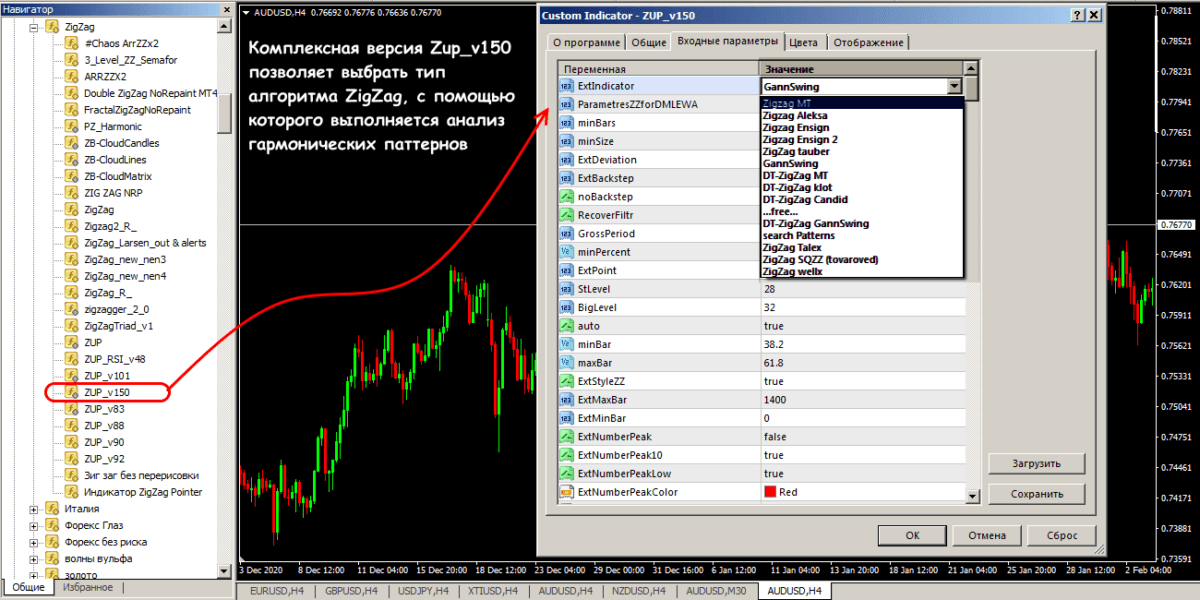 Так что новичкам рекомендуем пользоваться более понятными вариантами – Zup83 или PZ_Harmonic – в них используется ЗигЗаг без перерисовки. Но и Zup_v150 по умолчанию настроен только на поиск моделей Песавенто, а ненужные блоки построений, как например, виды Эндрюса, можно отключить в параметрах. Значения по умолчанию представляют собой достаточно надежный комплект (почитайте отзывы), так что менять их стоит только при явной необходимости и после тестирования.