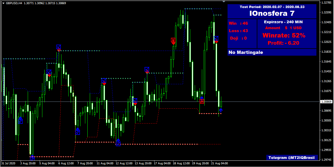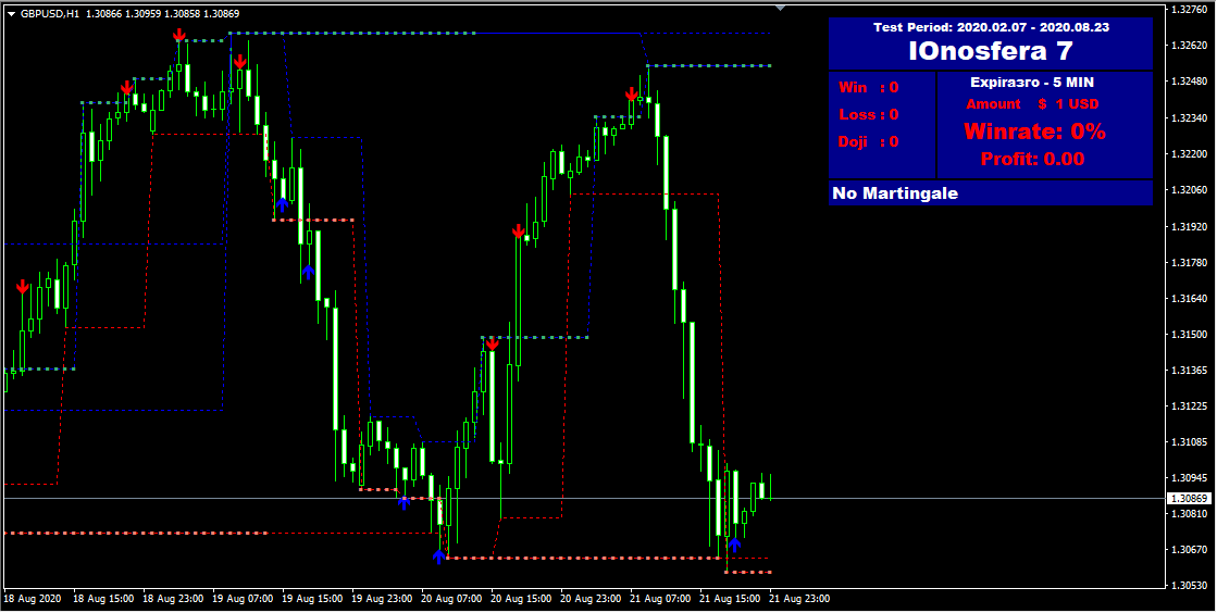 Ограничений по используемым инструментам нет, работает представленный ИТА на всех валютных парах. Рекомендуемые таймфреймы — не меньше H1. Сигналы на вход даются как для опционов Call, так и для Put.