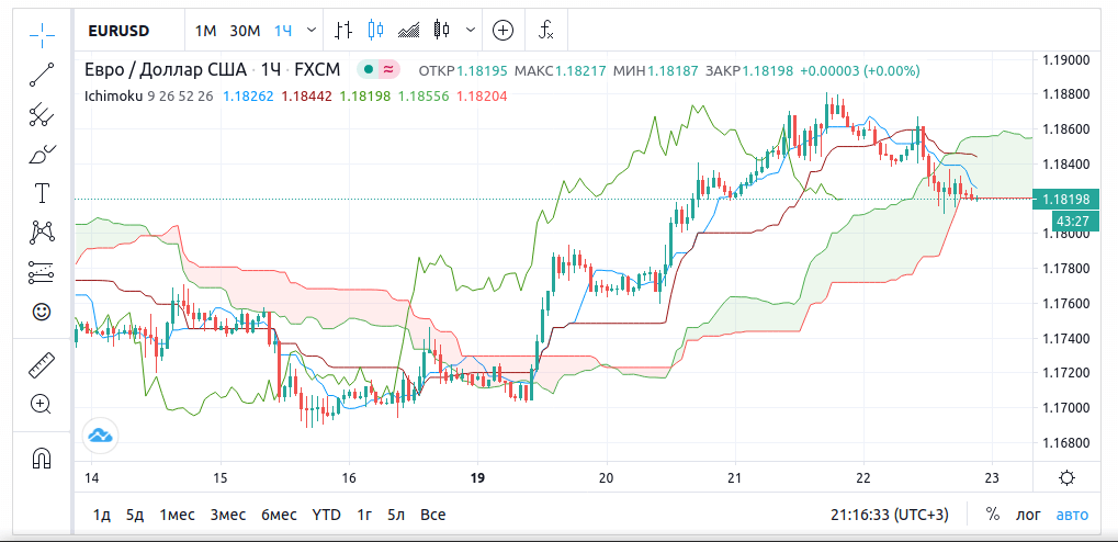 Мощная система определения наличия тренда. Состоит из особым образом построенных скользящих средних. Будучи грамотно настроенным, покажет трейдеру текущее состояние, позволив убедиться в правильности принимаемого решения. Выглядит интуитивно понятным и при использовании в качестве единственного аналитического актива, отлично подходит для определения тренда для бинарных опционов.