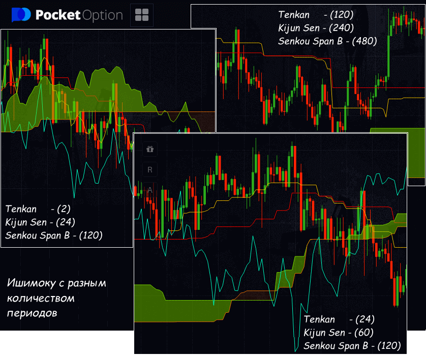 В заключение еще раз напоминаем, что при параметрах по умолчанию Ichimoku Kinko Hyo в зависимости от особенностей актива может, как давать надежные сигналы, так и очень запаздывать даже на промежутках H4-W1 (неделя). Для Форекс пробуйте пропорционально уменьшить количество периодов, тогда даже внутри дня большинство опционов будет прибыльными.