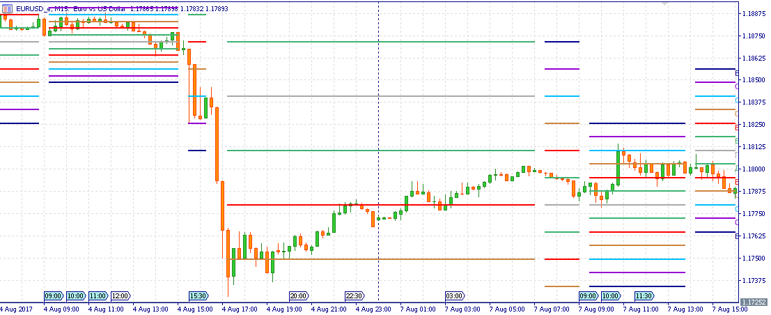 В классическом виде отображаются четкие ценовые области, для MT4 и для MT5 в библиотеке технических инструментов можно найти и скачать множество вариантов отображения «уровней», отзывы успевших воспользоваться системой можно взять за основу при выборе наиболее подходящего варианта. В данном материале рассмотрим классический линейный вид, в котором отображаются уровни тенденции и другие значимые для тренда моменты. Принцип работы для Quik такой же, могут быть небольшие различия в отображении на тренде, но этого не стоит бояться, любое визуальное оформление может быть настроено под нужды конкретного игрока.