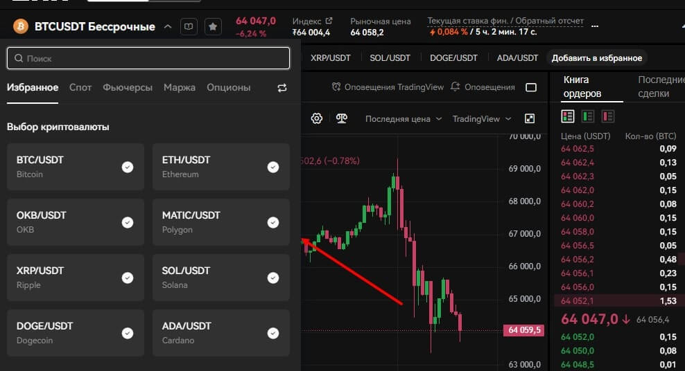 - Выбора актива для торговли. OKX предлагает широкий выбор криптовалют, что позволяет трейдерам найти подходящий для себя вариант.