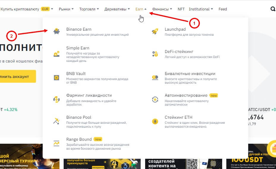 Binance Earn – специальный раздел, который обладает своей уникальностью и универсальностью. В ней сочетается варианты, связанные с заработком на торговле криптовалют и инвестиционных методов. В сервисе собрано множество вариантов для инвестирования. Пользователь сможет зарабатывать пассивно не прилагая больших усилий.