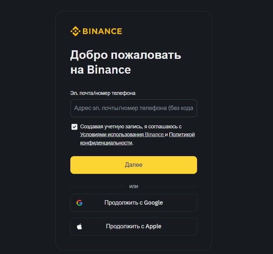- Регистрация. Зарегистрируйте аккаунт на бирже Binance, указав адрес электронной почты и пароль.