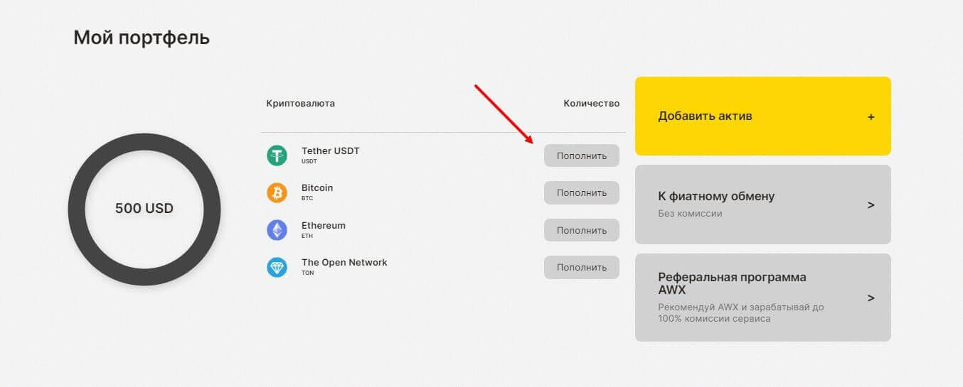 Пользователи на сайте криптовалютные биржи AWX могут пополнить счет тремя способами:
