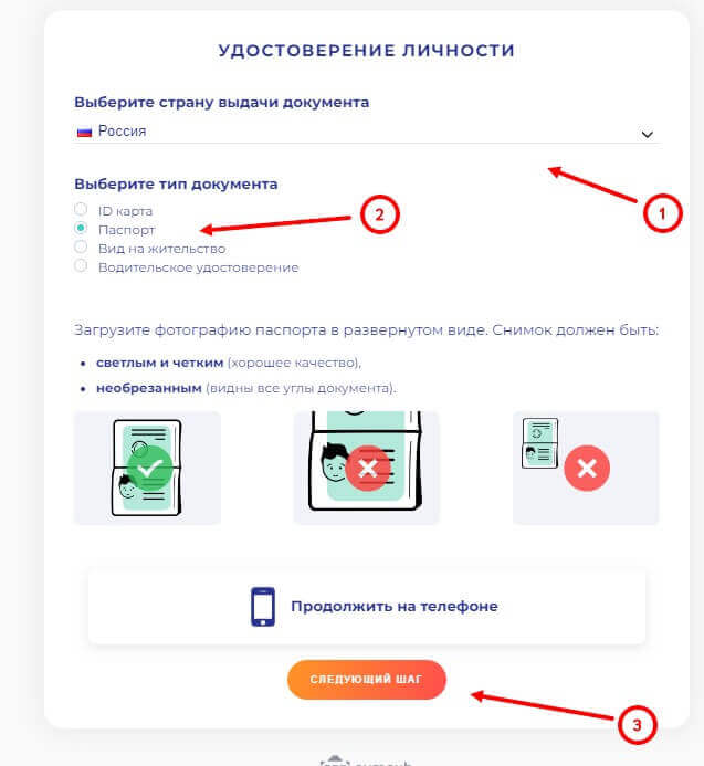 После этого заполните ряд полей (являетесь ли вы резидентом США или нет, имя и фамилия, дата рождения, номер мобильного телефона и адрес электронной почты). После этого выберите документ и загрузите фотографию с правилами, указанными на странице. Затем пройдите проверку лица (Face ID).