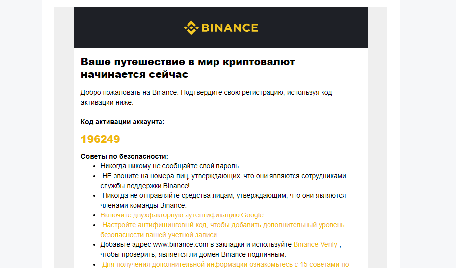 Письмо с кодом, которое должно прийти на адрес электронной почты выглядит следующим образом: