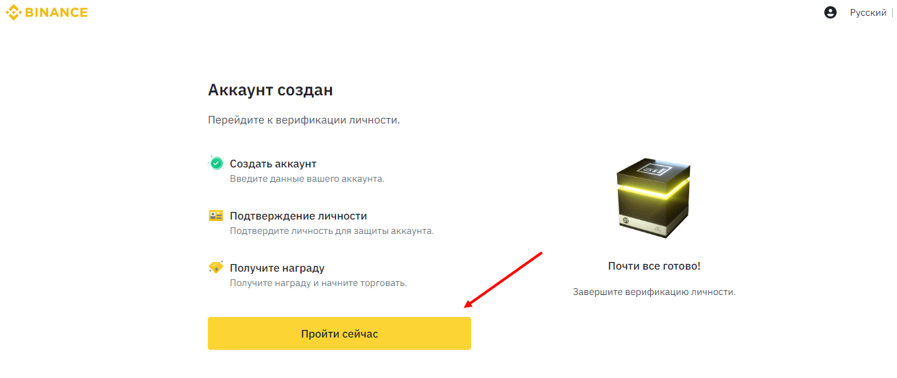 На этом процедура регистрации закончено. Вас встретит приветственное окно, в котором будет говориться, что вам необходимо пройти процедуру по подтверждению личности. Если планируете пройти сразу после регистрации, то нажмите на кнопку “Пройти сейчас”.