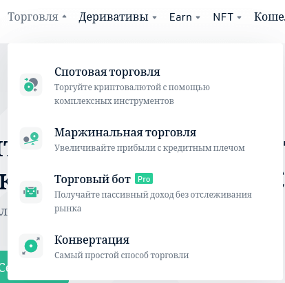 Этот раздел предназначен для классического трейдинга на криптовалютном рынке: