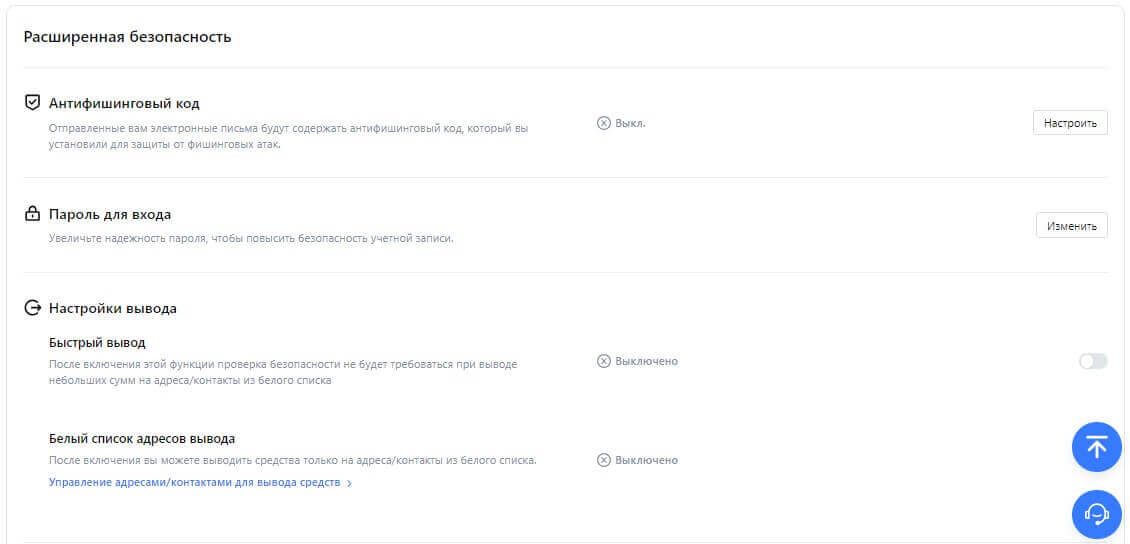 Защита вашего аккаунта от возможных взломов и будущей потери накопленных активов на сайте MEXC Global — это наша первоочередная рекомендация. Для этого мы предлагаем подключить оба варианта, чтобы были полностью защищены. А обеспечение безопасности аккаунта от третьих лиц может происходить с помощью настройки расширенной безопасности. Это включает использование антифишингового кода, создание белого списка адресов и возможность входа через сторонние аккаунты, такие как Google, Apple ID или Telegram. Применение таких мер предосторожности будет полезно для сохранения надежности аккаунта и предотвращения внешних угроз.