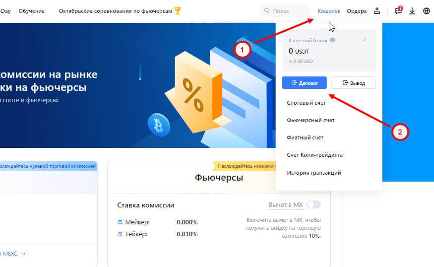 На спотовый рынок полностью нулевая, при торговле фьючерсами необходимо оплачивать тейкерам в размере 0,01%, с возможностью уменьшения, купив токены MX, позволяющие предоставить скидку в размере 10% и оплачивая лишь 0,009% комиссионных.