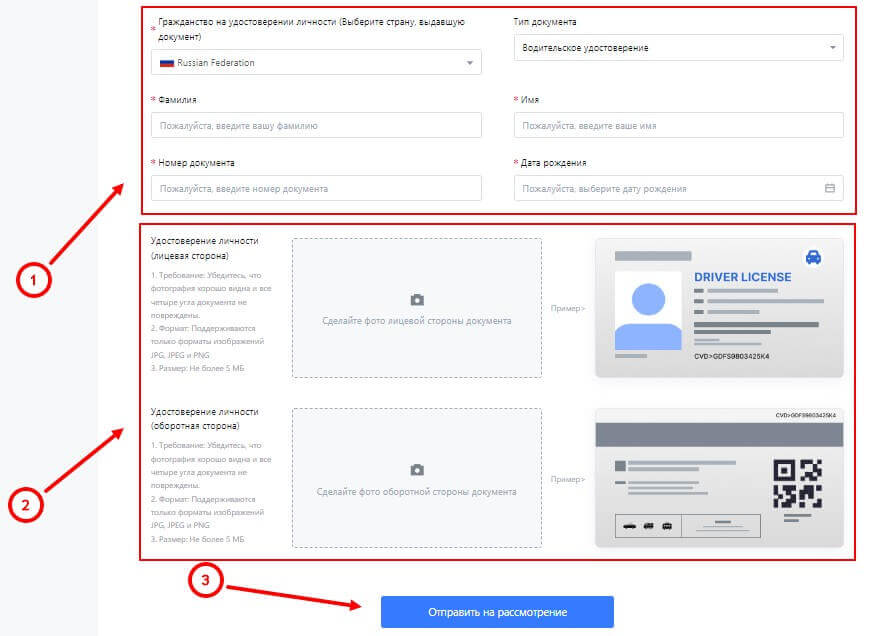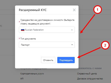 После нажатия на кнопку «Подтвердить», клиенту снова потребуется указать тип документа и страны проживания.