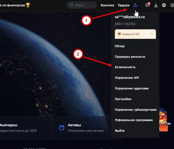Для обеспечения безопасности аккаунта перед использованием услуг также следует предпринять определенные меры. Чтобы перейти в раздел безопасности, необходимо навести курсор мыши на иконку, изображающую человечка, и нажать на соответствующее название раздела — «безопасность».