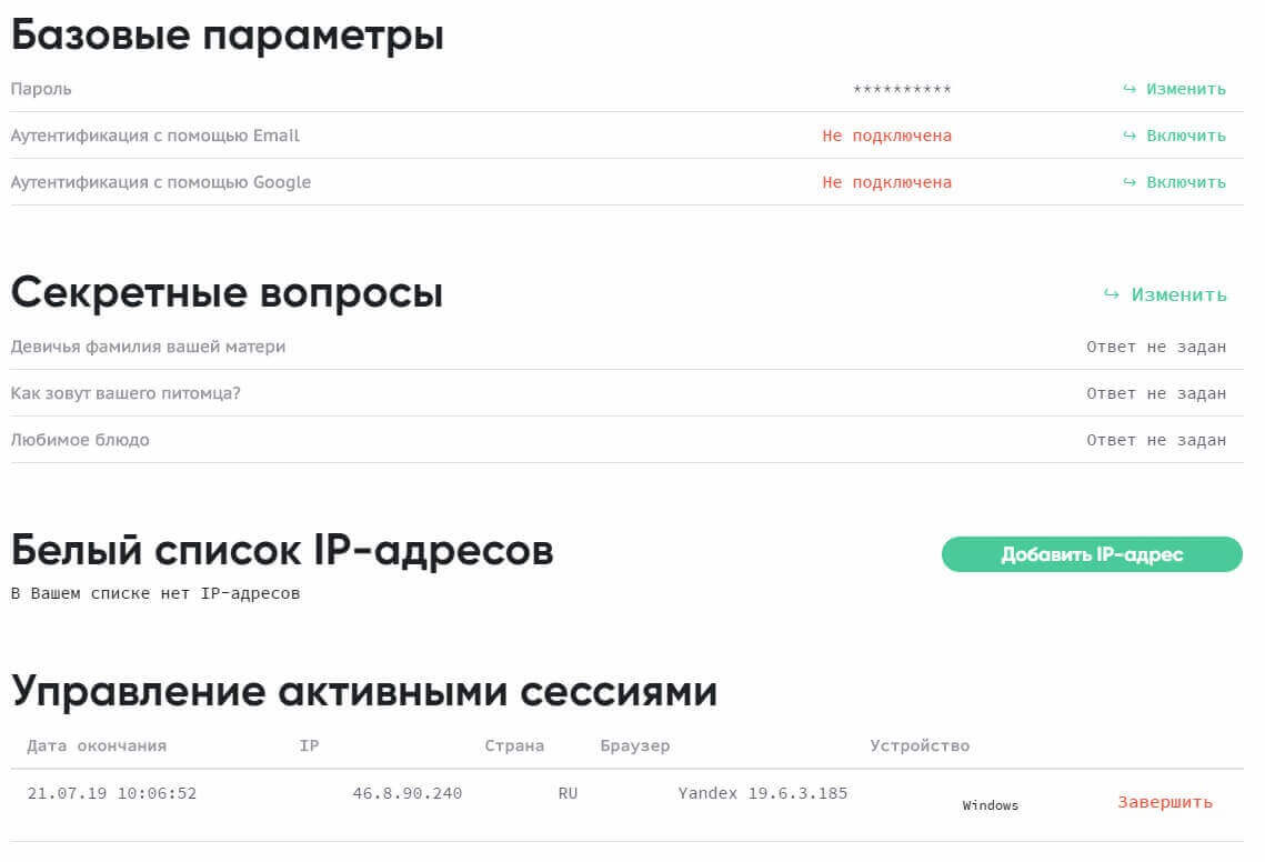 - Высокий уровень защиты. Благодаря проработке всех аспектов безопасности, биржа обладает высоким уровнем защиты пользовательских данных и средств, размещенных на счетах. Имеется множество инструментов для повышения защиты аккаунтов от взломов третьими лицами.