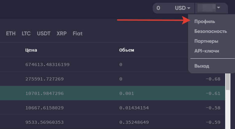 Для перехода в ЛК на криптовалютной бирже Stockpoint, необходимо кликнуть на свое имя и выбрать раздел “Профиль”. Первоочередной задачей будет прохождение верификации аккаунта с целью повышения безопасности – ввод фамилии, имени, адреса проживания и другой информации.