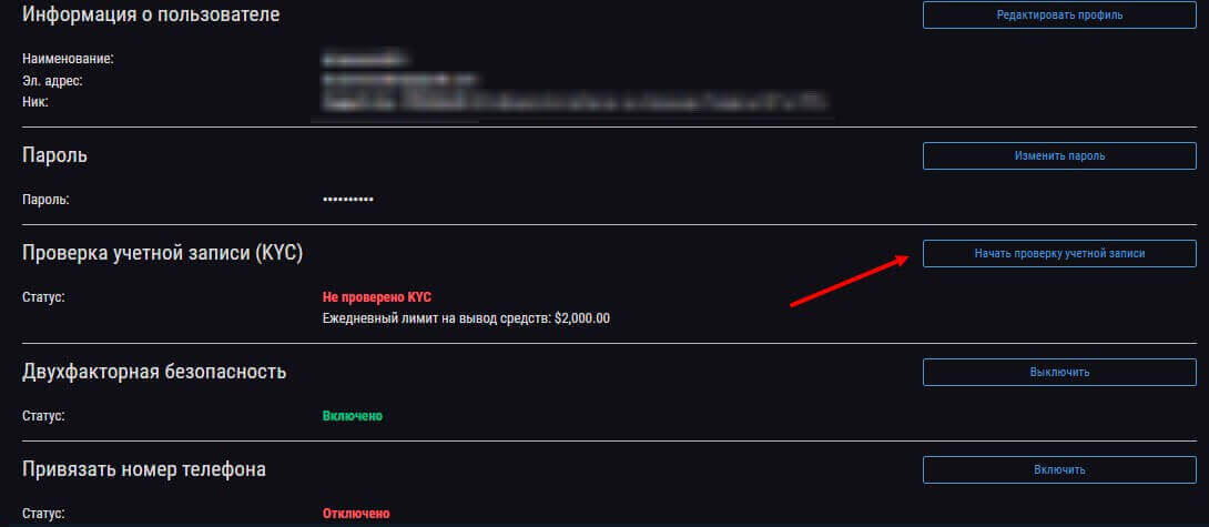 Кроме этого следует настроить другие формы безопасности – привязка номера телефона, а также проверка учетной записи по стандарту KYC и AML. Также можно отдельно можно настроить как вход аккаунта, так и вывод средств по коду из письма на электронной почте.