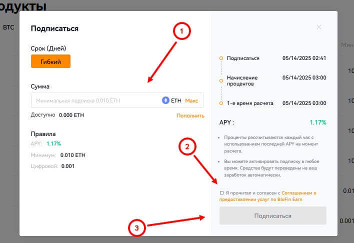 Для начала вам нужно создать аккаунт на платформе BloFin и пройти процедуру KYC. После этого, пополните ваш счет и выберите опцию Earn, чтобы инвестировать в доступные криптовалютные активы.