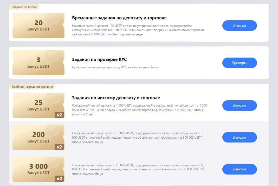 Выполнив задание бонусы можно использовать для фьючерсной торговли – вывести тело полученной пользователем награды нельзя (можно получить чистую прибыль от фьючерсных сделок после получения), в качестве маржи, вычета комиссий по сделкам или ставке финансирования.